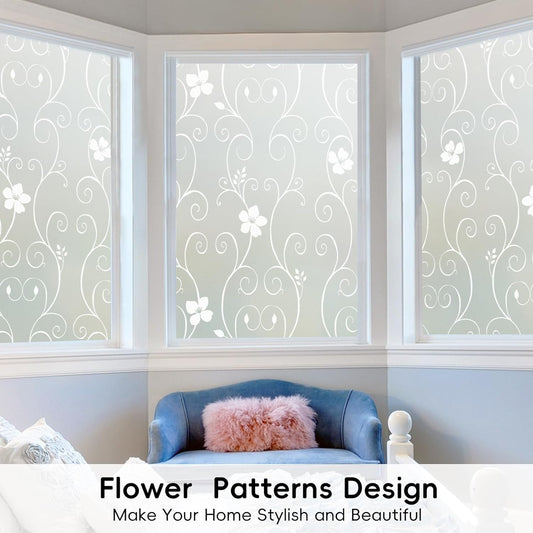 Window Film Privacy Window Film Frosted Glass Film Static Cling Glass Film No Glue Anti-Uv Window Sticker for Bathroom Bedroom Living Room (White Flower-Dp014W, 23.6In. X 78.7In.)